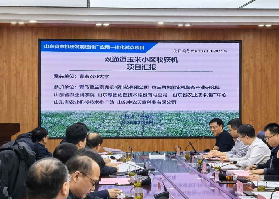 2026年2月3日,山东省农机研发制造推广应用一体化试点项目“双通道玉米小区收获机”启动会在ok138cn太阳集团古天乐会议室召开。该项目由ok138cn太阳集团牵头承担,青岛普兰泰克机械科技有限公司等四家单位协同参与。国内相关领域行业专家、山东省农业农村厅分管领导以及项目组成员出席本次会议。