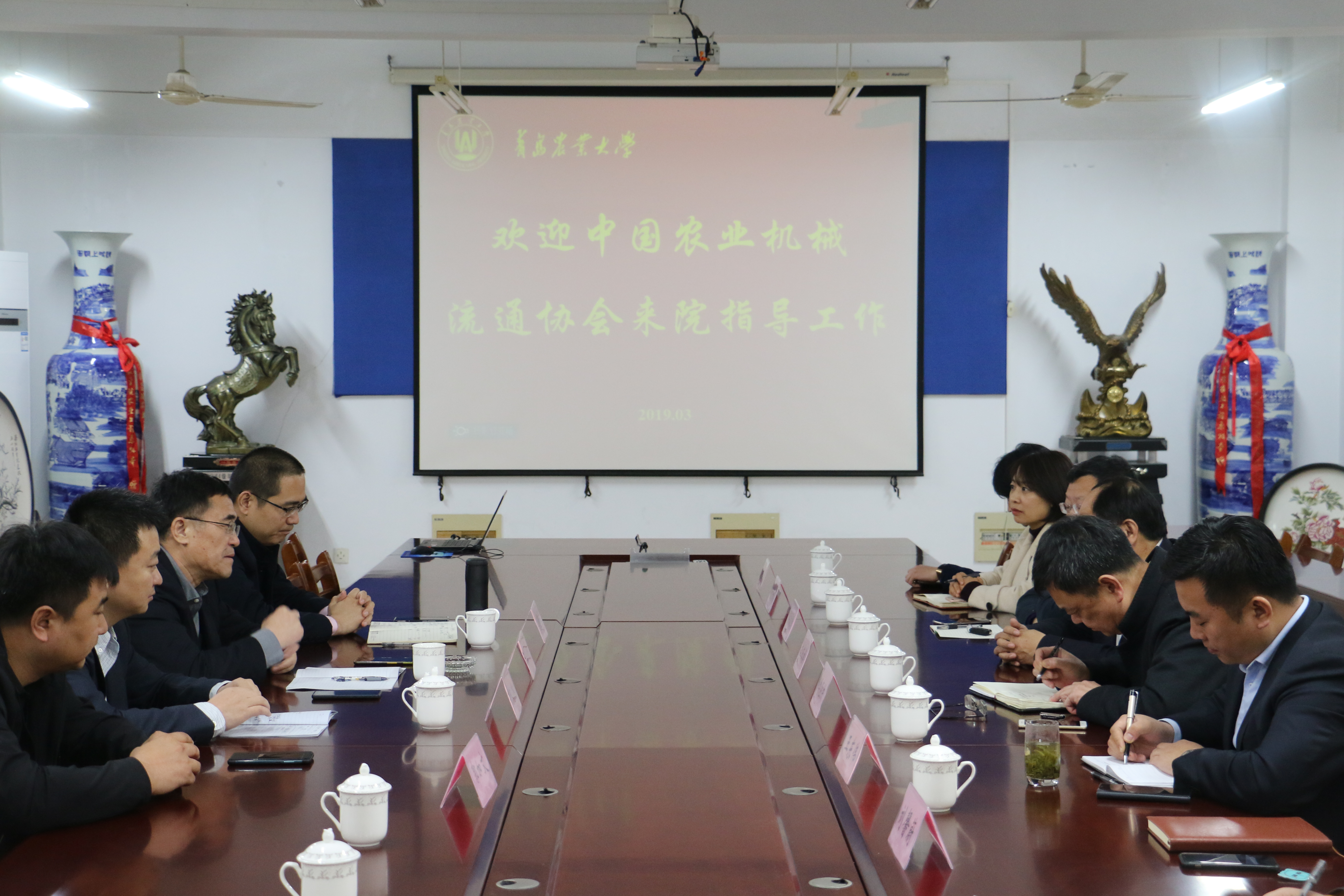 3月29日,中国农业机械流通协会副会长兼秘书长陈涛一行走访ok138cn太阳集团古天乐,并就2019中国国际农业机械展览会(青岛西海岸新区)相关工作进行了座谈交流。院长尚书旗、党委书记李在洪及部分教师、研究生参加座谈交流。