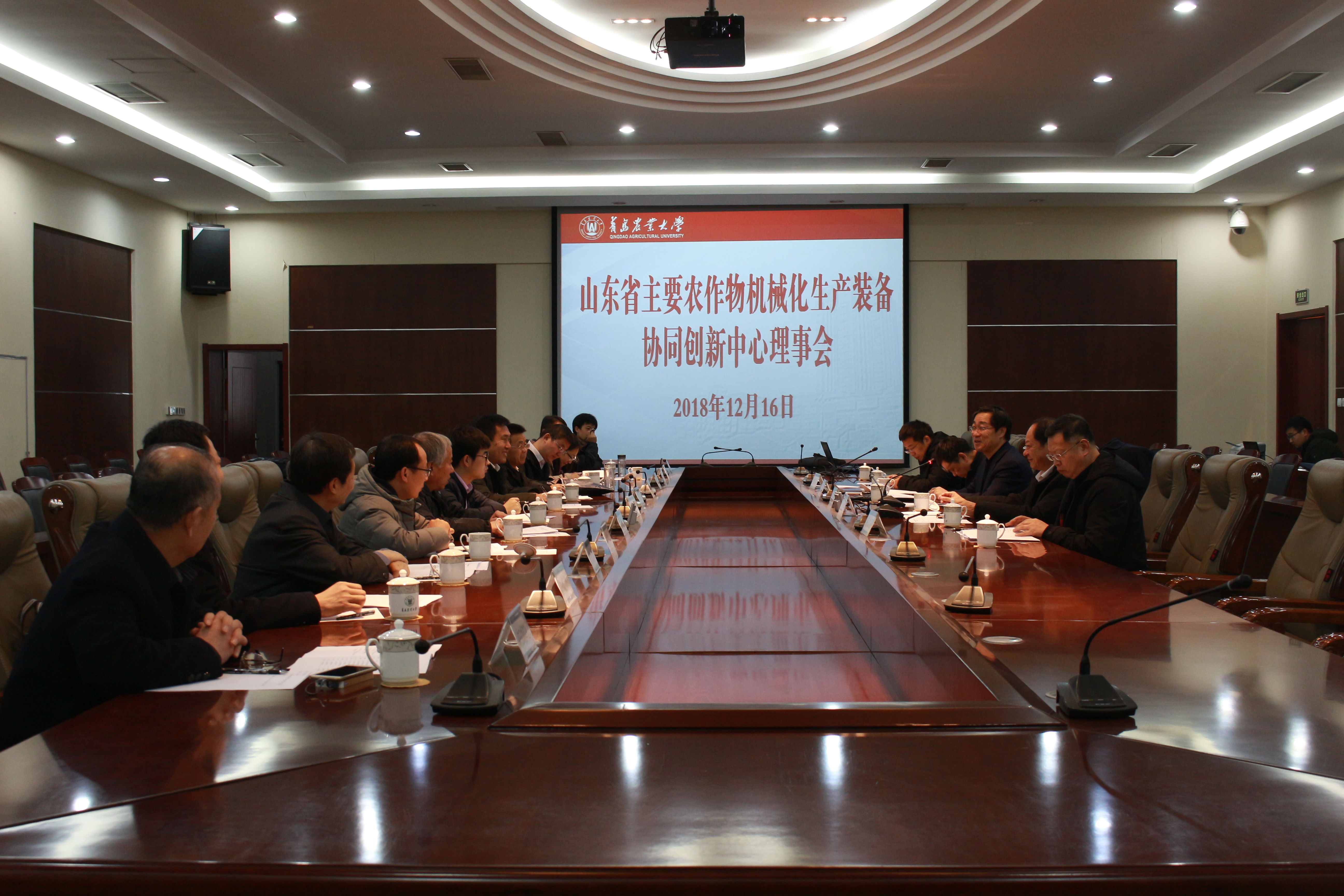 2018年12月16日,山东省主要农作物机械化生产装备协同创新中心理事会会议在ok138cn太阳集团学术会馆顺利举行。ok138cn太阳集团校长、协同创新中心理事会理事长宋希云教授,协同创新中心理事会理事、山东省农业机械科学研究院副院长焦伟研究员,协同创新中心理事会理事、山东五征集团农装事业部副总经理方吉祯研究员,协同创新中心主任委员会主任、ok138cn太阳集团古天乐院长尚书旗教授出席了本次会议,中国农业机械化科学研究院、山东省农业机械科学研究院、山东理工大学、山东农业大学、雷沃重工股份有限公司、山东五征集团等十二家单位的理事及其代表参加了本次会议。
