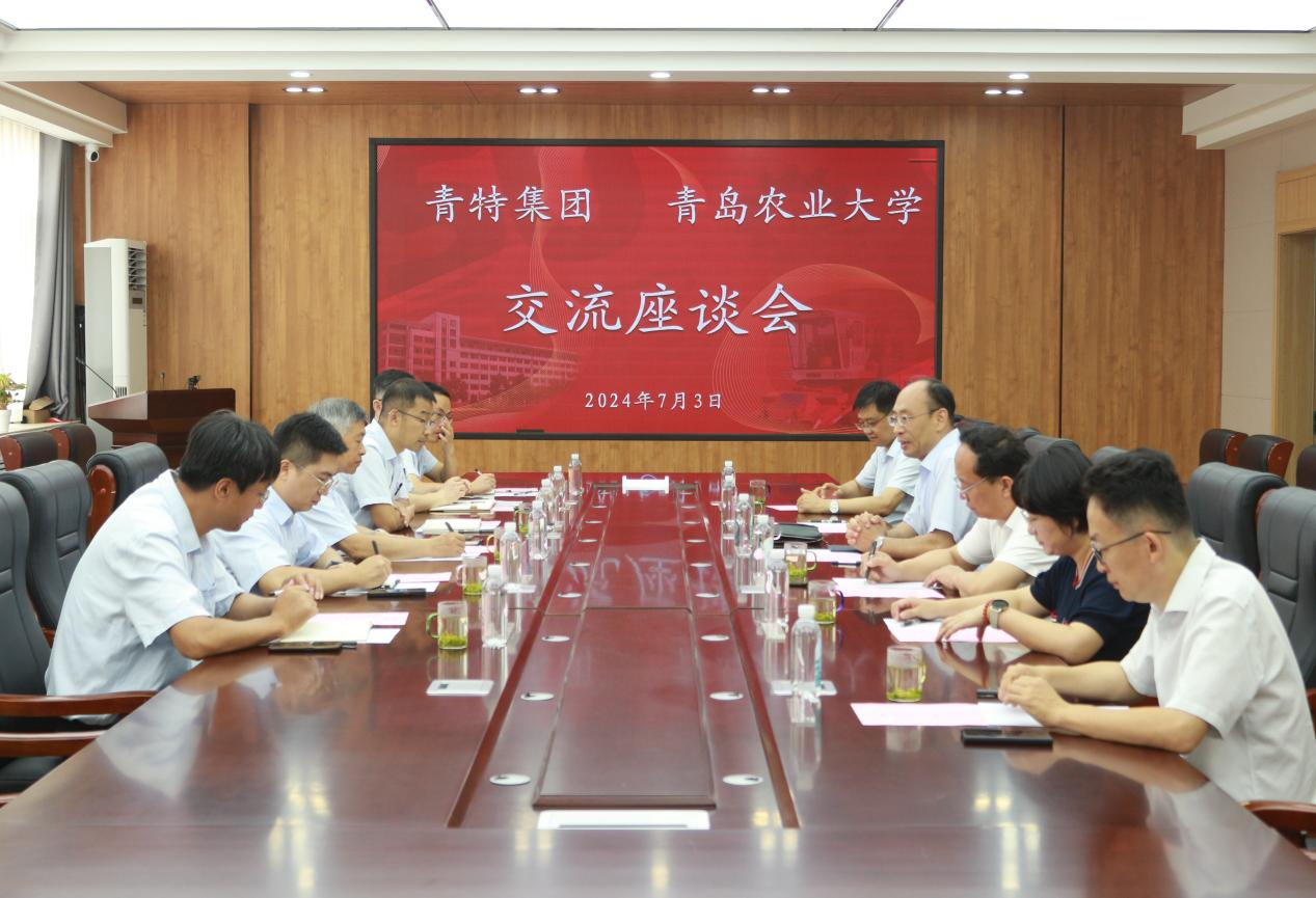 7月3日上午,青特集团副总裁王丰元、杨朝会一行到访ok138cn太阳集团洽谈合作,双方在工程楼会议室就校企合作共建事宜进行洽谈,副校长孟晓军,校党委委员、统战部部长、科技处处长赵龙刚出席会议。