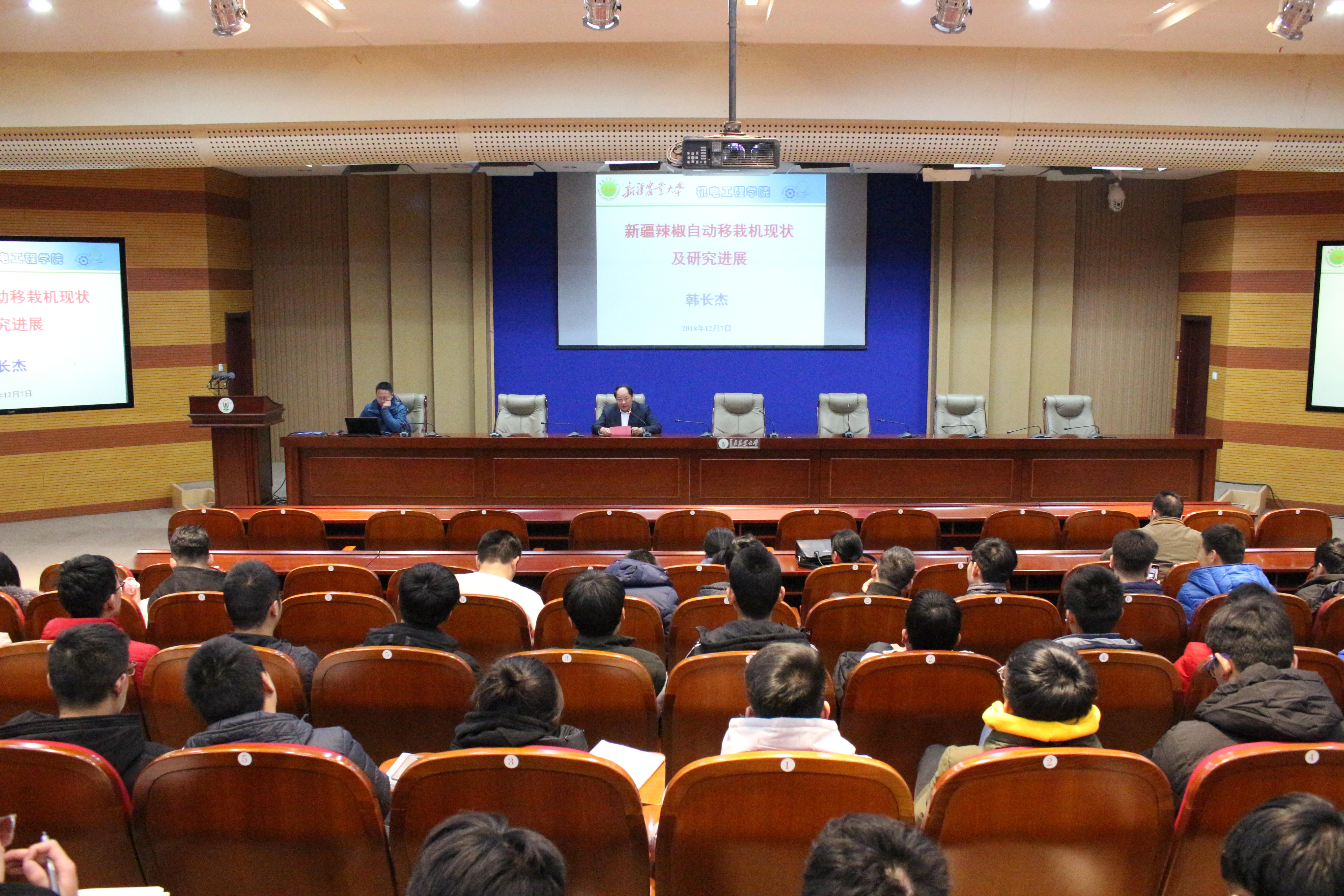12月9日,新疆农业大学ok138cn太阳集团古天乐副院长韩长杰为我校师生作了题为“新疆辣椒自动移栽机现状及研究进展”的学术报告。ok138cn太阳集团古天乐院长尚书旗教授主持报告会,全校近200名师生参加。