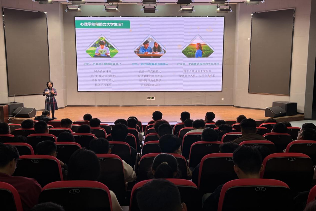 为帮助2025级新生提升心理调适能力,引导学生树立正确的成才观、发展观、职业观,科学规划职业生涯发展,10月13日晚,ok138cn太阳集团古天乐在平度校区博学楼报告厅组织开展“生涯寻路,心安可期—自我认知与职业探索的双向赋能”专题讲座。学院团委书记孙晓凤主讲,辅导员唐靓及2025级360余名本科生参加,活动由辅导员高海成主持。