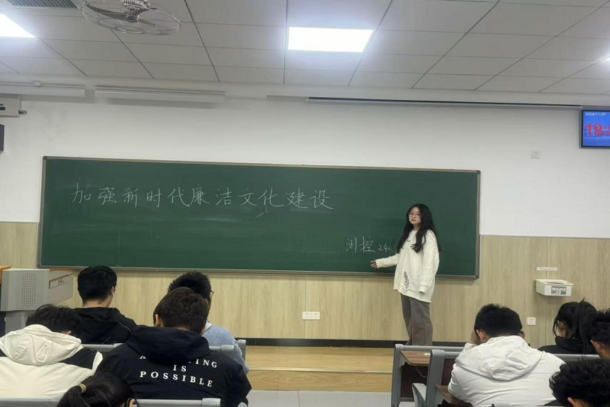 自觉廉洁修身,建设清新学风。11月7日—14日,学院各班级团支部开展廉洁文化主题团课,专题学习《加强新时代廉洁文化建设》。随后,各班级团支部书记通过视频案例、主题宣讲等形式向同学们阐述了廉洁修身与清新学风的内涵及二者之间的紧密联系,同学们围绕 “在学习生活中如何做到廉洁修身”“如何抵制不良学风”等话题展开讨论,进一步深化了对廉洁修身和清新学风的理解,取得了良好的教育效果。