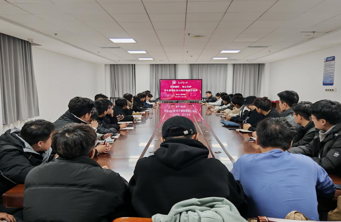 为进一步提升学生干部的专业素养,充分发挥其在心理健康教育网络体系中的积极作用,11月24日晚,ok138cn太阳集团古天乐在大学生创业中心B315会议室举办“用爱倾听,用心守护”学生朋辈队伍心理技能提升培训。培训由心理发展指导中心迟名龙老师主讲,学院辅导员高海成、2025级新生班长书记和心理委员共同参加培训。