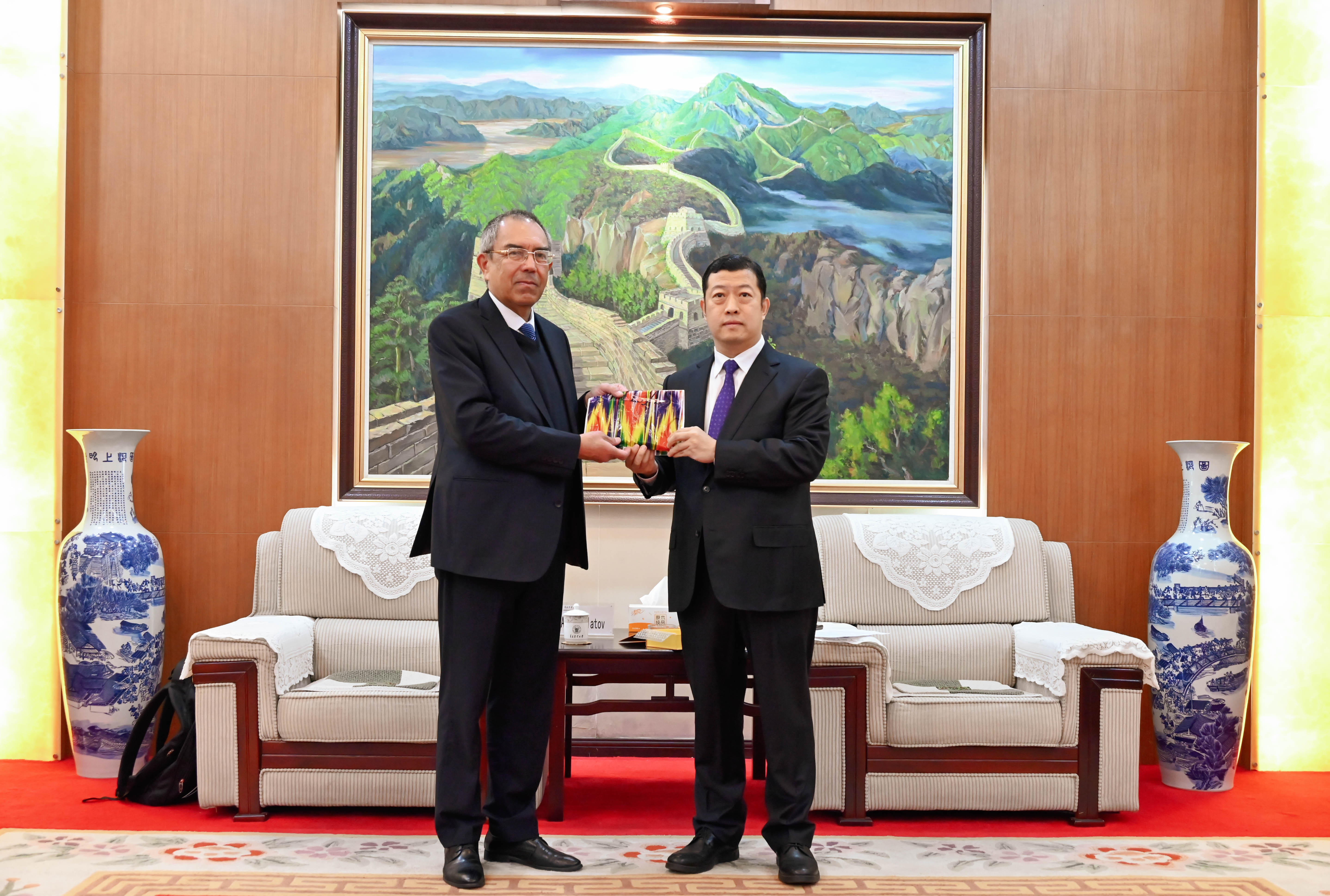 会前,王永健亲切会见Alim Pulatov教授。王永健表示,我校与塔什干水利与农业机械工程大学在交流广度和合作深度上不断拓展,希望双方围绕学科建设、交流访学、留学生教育等方面加深合作、共谋发展。王永健代表学校向Alim Pulatov教授赠送纪念品,祝愿两校友谊长存。