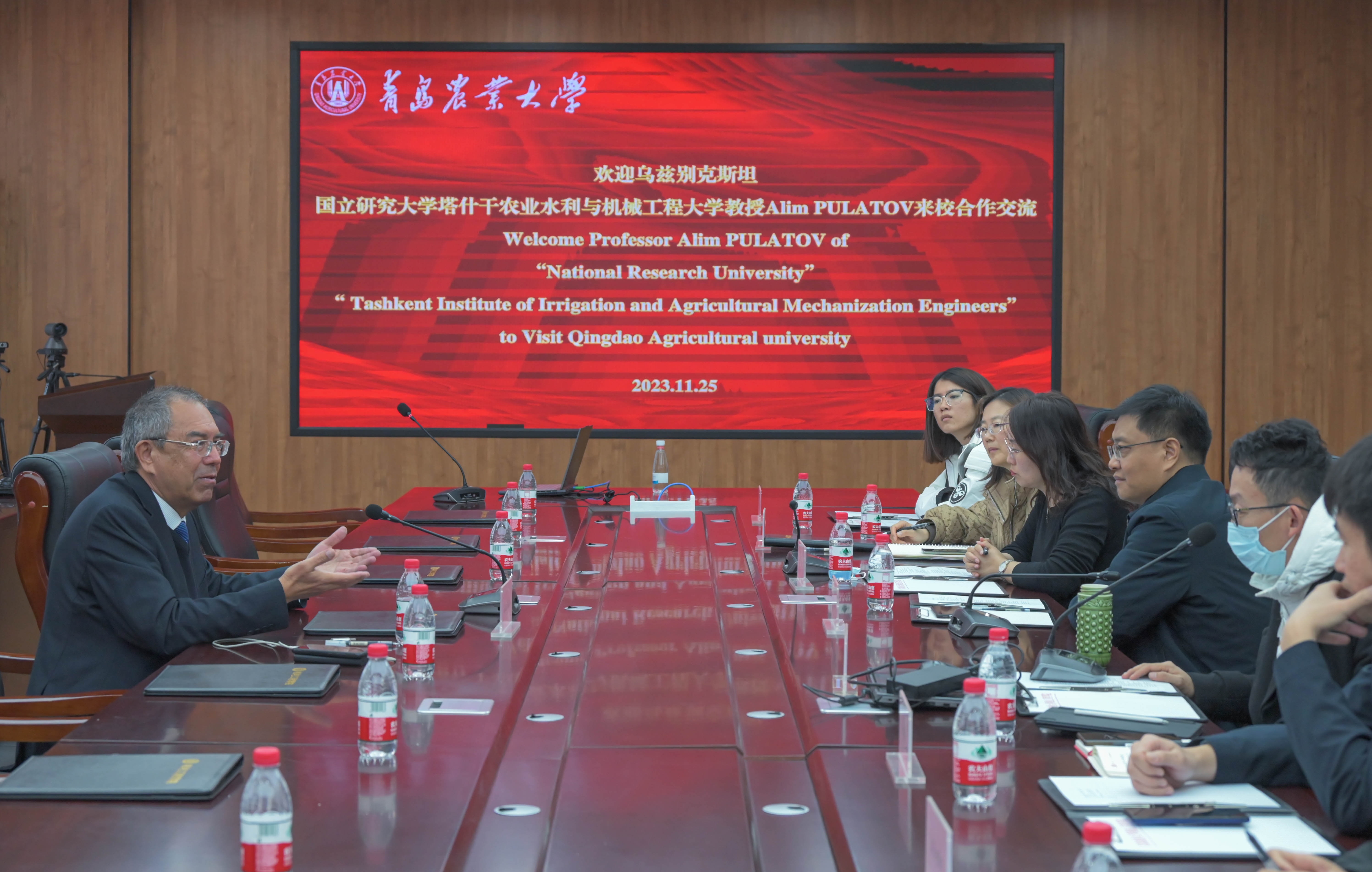 11月25日,乌兹别克斯坦塔什干水利与农业机械工程大学Alim Pulatov教授应邀到ok138cn太阳集团交流访问。校党委委员、副校长王永健出席活动,校国际合作交流处处长许颖、副处长王磊、ok138cn太阳集团古天乐副院长王家胜、院长助理王宝超及学院教师、研究生代表参加活动。