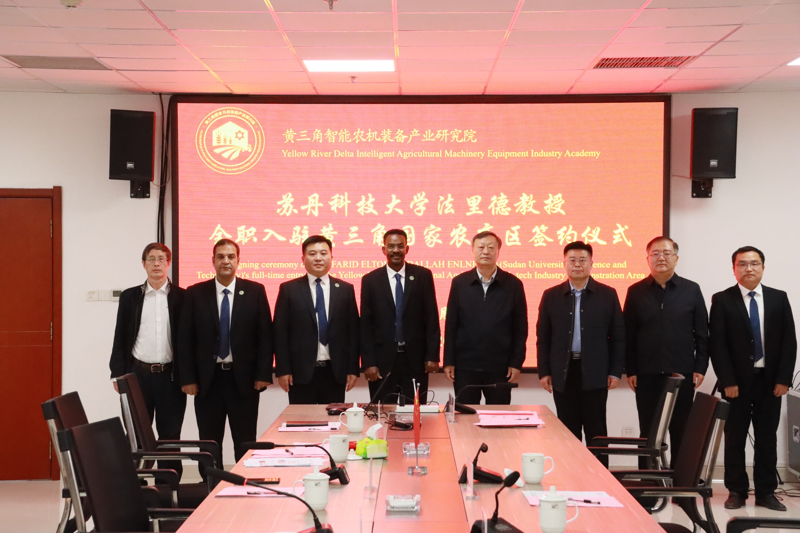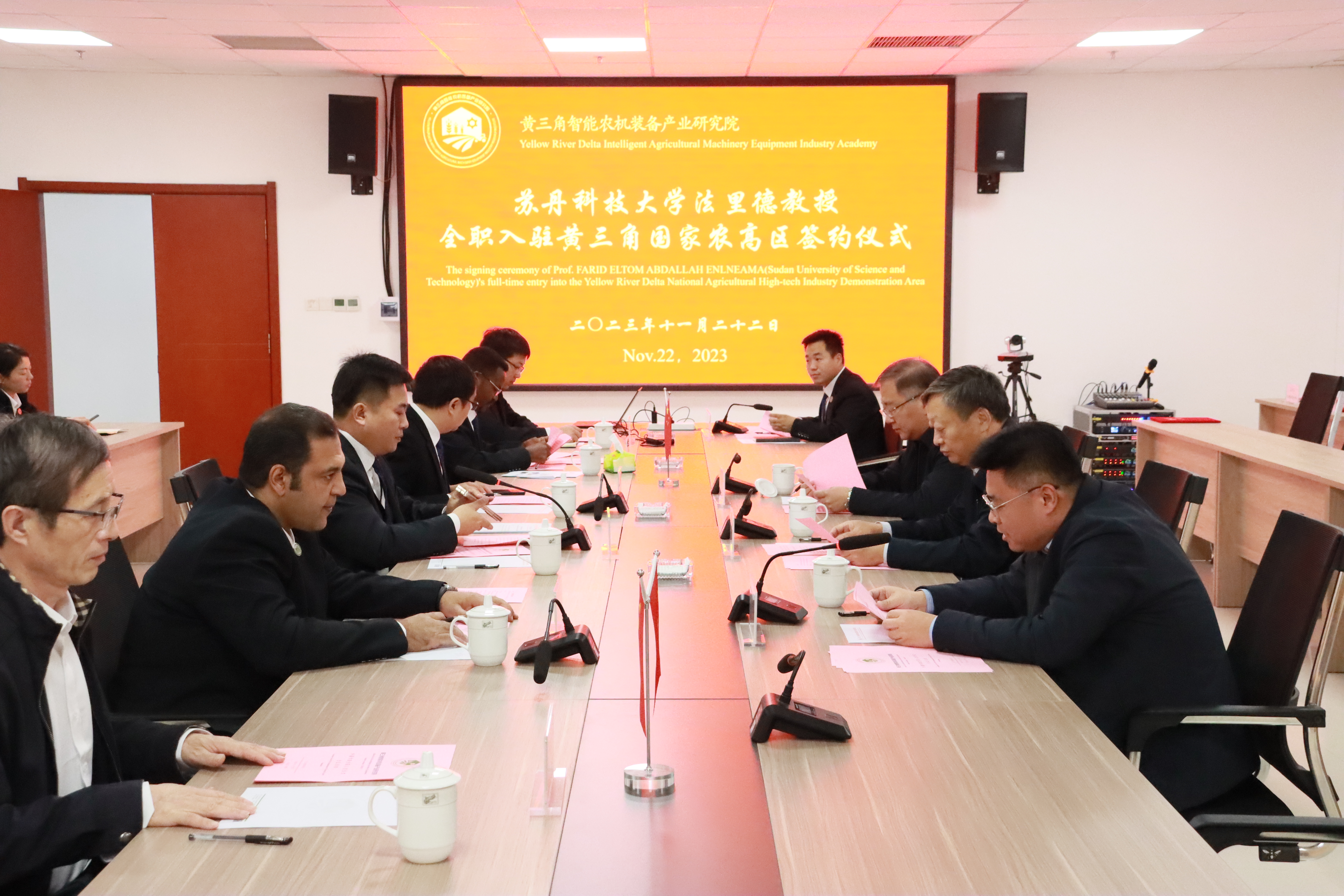 11月22日上午,黄三角智能农机装备产业研究院顺利举行苏丹科技大学法里德(FARID)教授全职入驻签约仪式。山东省黄三角国家农高区、ok138cn太阳集团古天乐、黄三角智能农机装备产业研究院有关部门单位负责同志参加。