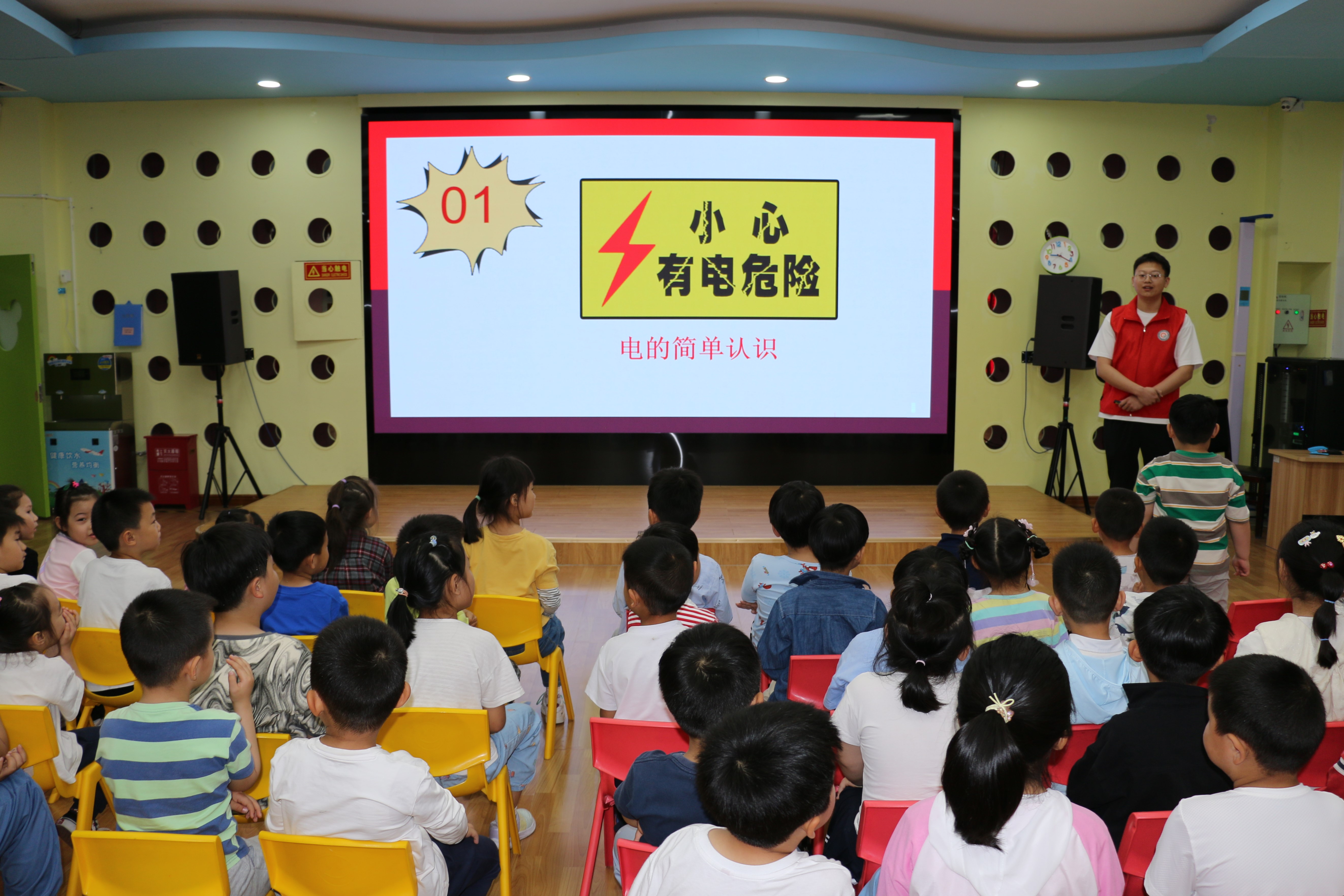 参观结束后,学生党支部志愿者来到小寨子社区幼儿园开展“科学用电·安全‘童’行”志愿服务宣讲活动。活动现场,志愿者们通过视频案例、故事讲解、趣味问答等形式宣传科学用电、安全用电的知识,提醒孩子们远离危险电源,防范触电事故,养成节约用电的习惯。本次活动旨在帮助幼儿从小树立“安全用电、科学用电、节约用电”的良好行为和习惯,进一步推广普及社区安全用电知识,营造安全用电的社区生活氛围。