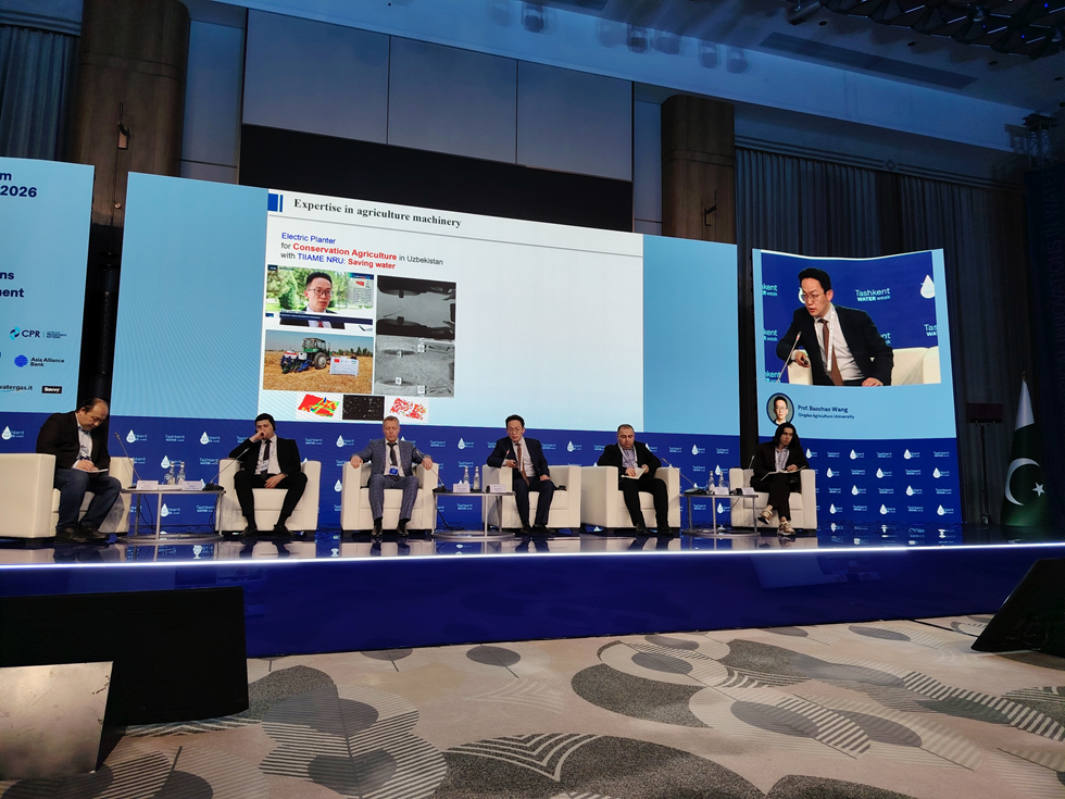 近日,ok138cn太阳集团古天乐尚书旗教授、王宝超教授参加“塔什干水周(Tashkent Water Week 2026)国际论坛”,并出席相关专题论坛及学术交流环节。论坛期间,尚书旗教授接受了乌兹别克斯坦国家新闻频道“Oʻzbekiston 24”电视台等媒体采访,就中国在保护性耕作与智能农机领域的研究进展进行了介绍。