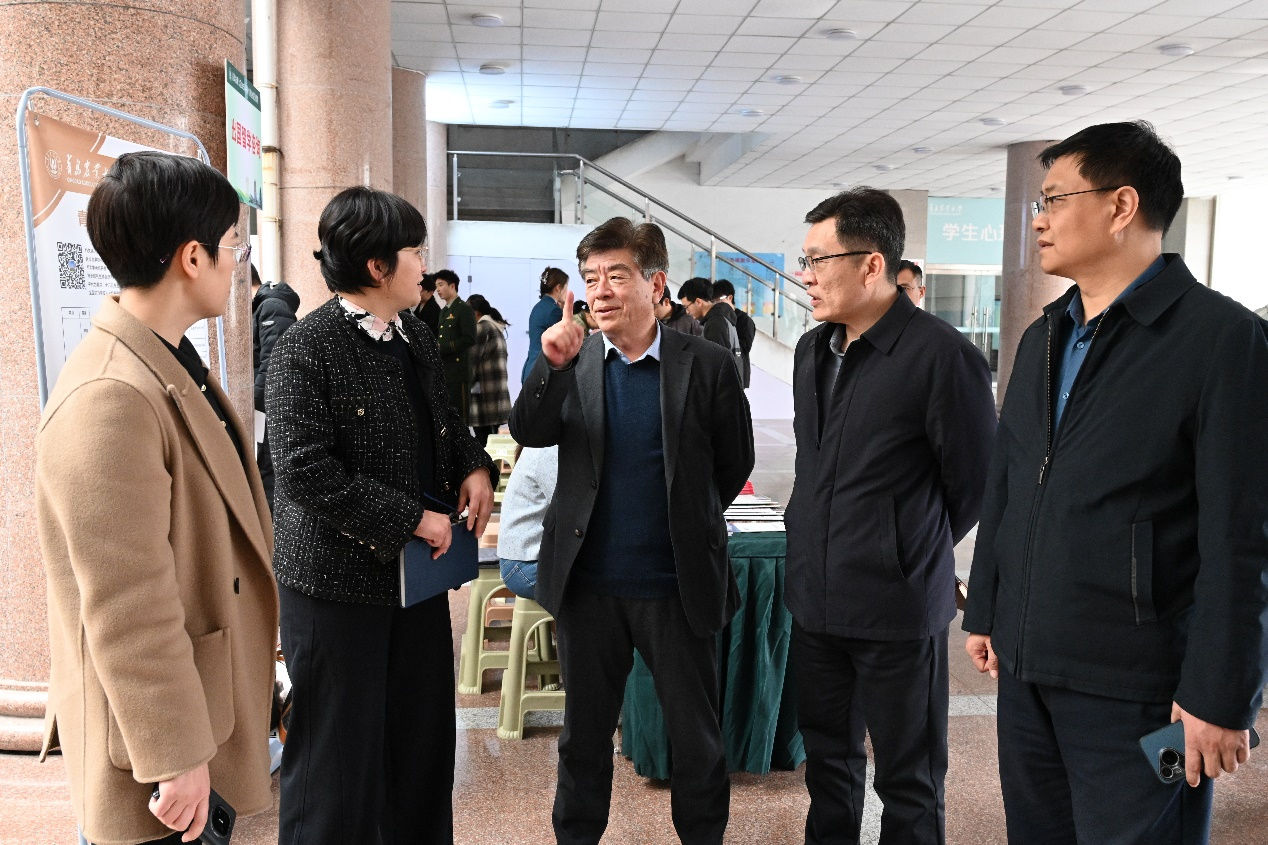本次招聘会邀请了中国重汽集团青岛重工有限公司、潍柴雷沃智慧农业科技股份有限公司、豪迈集团股份有限公司等104家用人单位参与招聘,累计提供500余个岗位需求,岗位类型丰富、涉及领域广泛、专业匹配度高,为广大2025届毕业生提供了多层次的就业选择。田义轲一行到场与用人单位和应聘学生进行交流互动,深入了解行业发展态势和就业岗位需求。他强调,要开展有温度、有针对性的就业指导服务,对困难群体毕业生落实“一对一”帮扶。要加强政社企沟通联系,精准开拓市场化就业渠道,提高就业岗位供需对接实效,助推学生就业工作高质量发展。