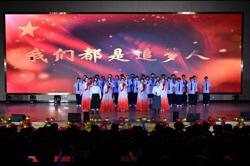本次表彰大会以“青春与梦想”为主题,围绕“逐梦·初露锋芒”“披荆·百炼成钢”“新程·未来领航”三个篇章表彰2024年度荣获各类奖学金和荣誉称号的110余名优秀学生。大会上,乐器演奏《都选C》、歌曲《篇章》、大合唱《我们都是追梦人》承载着青春记忆和时代共鸣,以直击人心的旋律激励着同学们对梦想挑战、人生选择的深刻探讨;舞蹈《灯火里的中国》,舞者们每一个动作都包含着对青春的热爱与国家的祝福;集体诗朗诵《强国有我,青春担当》表达了对国家深厚的感情和对民族的自豪,更是对青年精神的赞美,也是对实际行动的号召。师风盈耳,歌韵悠扬启贤才,辅导员刘孟杰老师和高海成老师带来歌曲串烧将现场气氛推向高潮。本次活动将表彰和文艺表演有机结合,加强师生之间的交流与互动,为全院师生打造一场异彩纷呈的视听盛宴。
