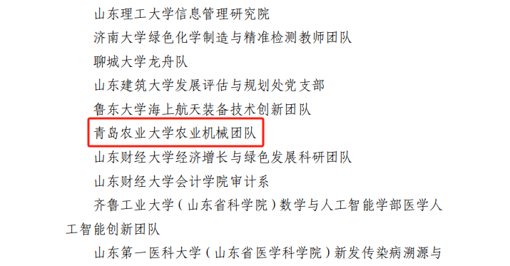 此次入选是对学校农业机械团队贯彻习近平新时代中国特色社会主义思想和党的二十大精神的高度认可,有效激励和鼓舞了团队成员奋发进取、创先争优的斗志和决心。下一步,团队将以黄三角智能农机装备产业研究院为抓手,依托重点实验室等科研平台,着力构建1+1+N产学研深度融合人才培养模式,持续打造农机装备应用型人才培养示范样板,努力为实现国家农业机械化、智能化高质量发展作出积极贡献。