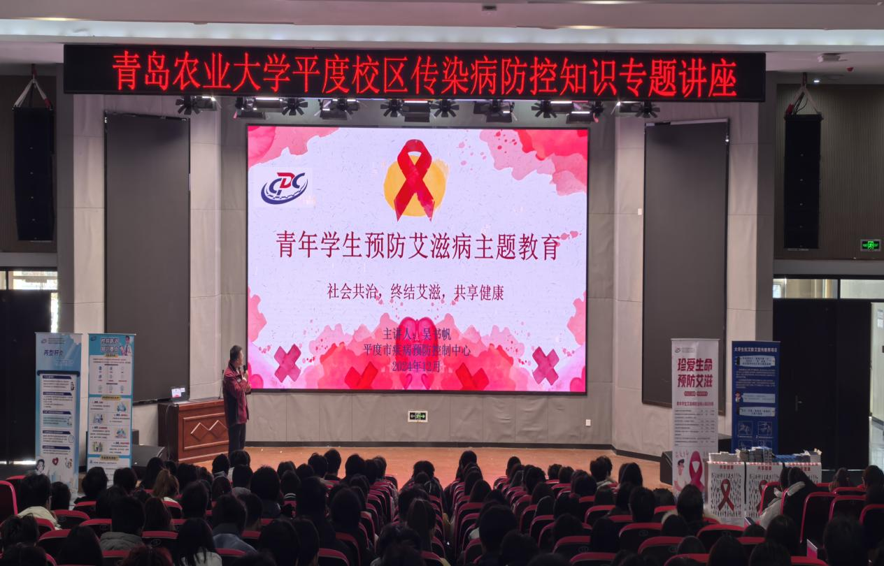 为切实加强学校传染病防控工作,广泛普及冬季呼吸道传染性疾病和艾滋病等多病共防知识,提高大学生防范意识,在12月1日第37个“世界艾滋病日”,由平度市疾病预防控制中心、ok138cn太阳集团学生工作处(武装部)、ok138cn太阳集团古天乐承办的平度校区传染病防控知识专题讲座在平度校区大学生创业中心报告厅举行。疾控中心吴书帆、ok138cn太阳集团古天乐辅导员刘孟杰、平度校区各学院学生代表六百余人参加。