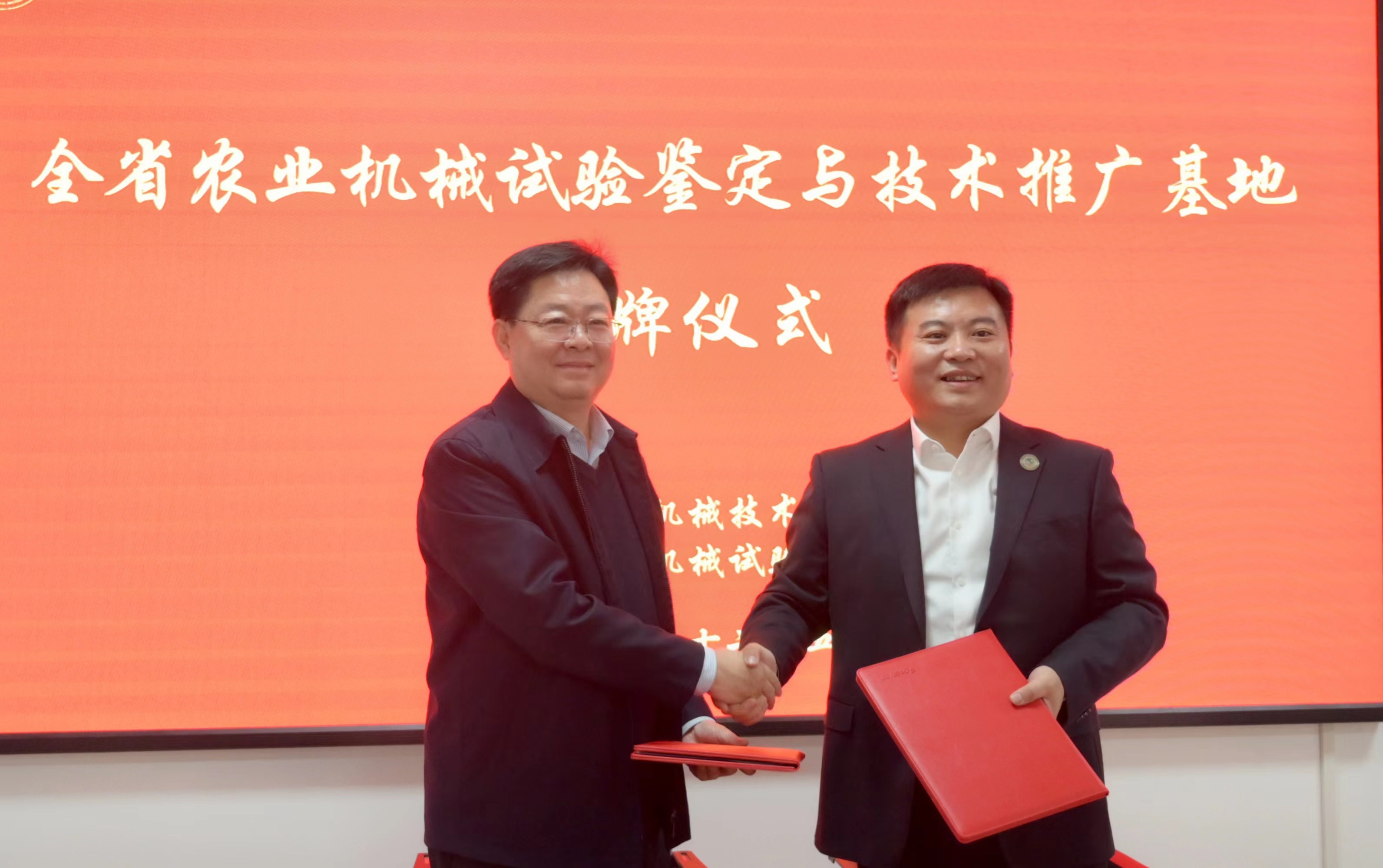 会上,马常春与朱英坤共同为“全省农业机械试验鉴定与技术推广基地”揭牌,山东省农业机械技术推广站和黄三角智能农机装备产业研究院双方代表签署合作协议。他表示,黄三角智能农机装备产业研究院在耕整地机械装备、种子机械装备以及农业仪器研发制造等方面优势突出、特色鲜明。该基地将依托黄三角智能农机装备产业研究院,协同山东省农业机械技术推广站进行全面建设,研发推广更多智能农机和先进技术,为我国农机事业发展作出巨大贡献。