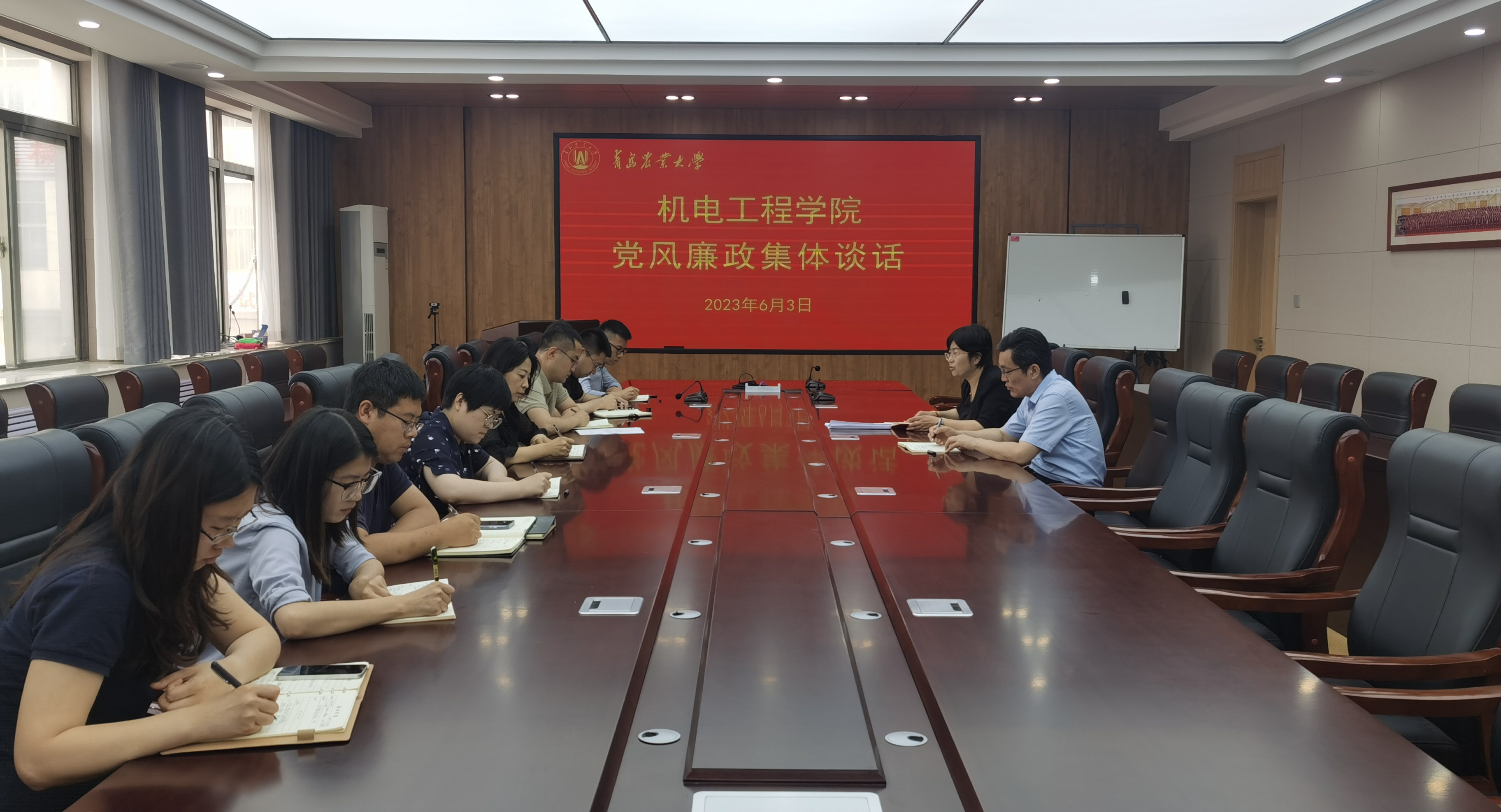 为进一步推进全面从严治党,促进党风廉政建设工作走深走实,6月3日下午,ok138cn太阳集团古天乐党委在工程楼216会议室开展党风廉政集体谈话。学院党委书记焦磊出席会议,学院全体辅导员、研究生秘书等行政管理人员参加会议,会议由学院党委副书记、副院长王海燕主持。