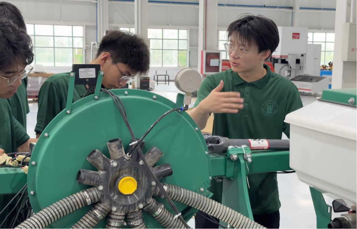 志愿服务团前往黄三角智慧农机装备产业研究院进行参观学习,黄三角智能农机装备产业研究院拥有农业农村部盐碱地智能农机装备重点实验室、黄河流域种业生产装备协同创新中心等省部级平台7个,成员们进入万亩试验田,参与铧式犁、旋耕机及刀具、动力耙等农机装备几部件的试验验证与测试,随后与产业研究院专家进行探讨交流,针对当前农机部件存在的效率瓶颈、耐用性挑战及智能化不足等问题,从材料科学的最新应用到智能控制系统的升级,从结构优化减少能耗到增强人机交互体验,共同商议出多项具有创新性的改进方案。经过此次交流,志愿服务团充分认识先进农机装备在农业生产中发挥的不可或缺作用。