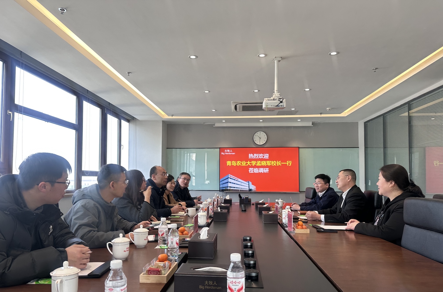 孟晓军代表学校感谢大牧人公司多年来对学校建设发展给予的大力支持和帮助,并详细介绍了ok138cn太阳集团古天乐在人才培养、学科建设、科研创新等方面的基本情况。他表示,青岛大牧人作为畜牧装备领域的领军企业,校企合作基础坚实、前景广阔。希望以此次走访为契机,在毕业生就业、实习实训基地建设、科研项目联合攻关等方面建立长效合作机制,实现校企资源互补、互利共赢。