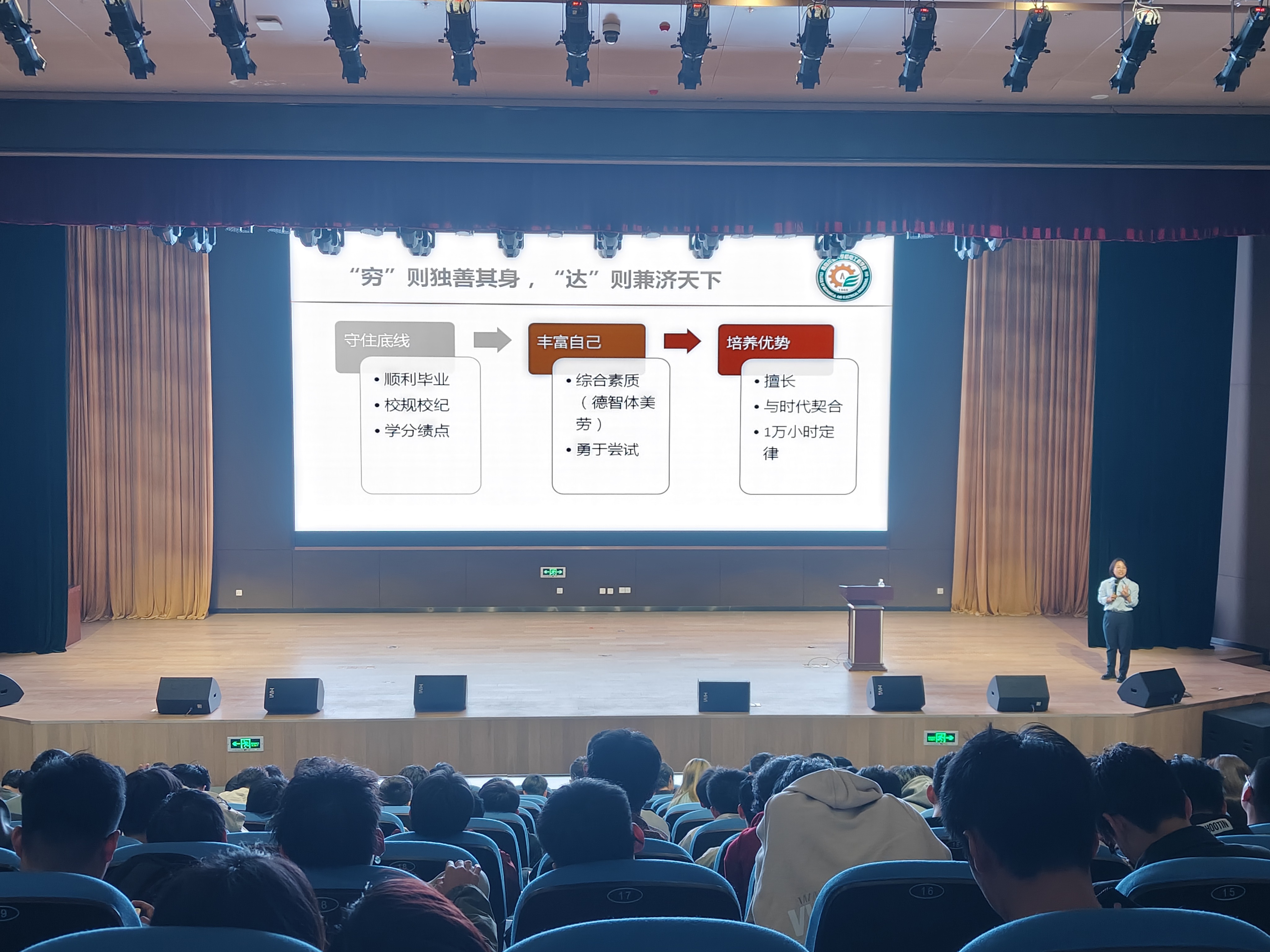 为进一步提升2023级本科生职业生涯规划意识,帮助学生科学认知职业发展,不断提高学生就业竞争力,5月7日,ok138cn太阳集团古天乐在平度校区举办“寻心之所向,筑未来之基—2023级本科生职业生涯规划讲座”,学院团委书记孙晓凤主讲,学院辅导员刘一江、唐靓及2023级本科生360余人参加讲座。