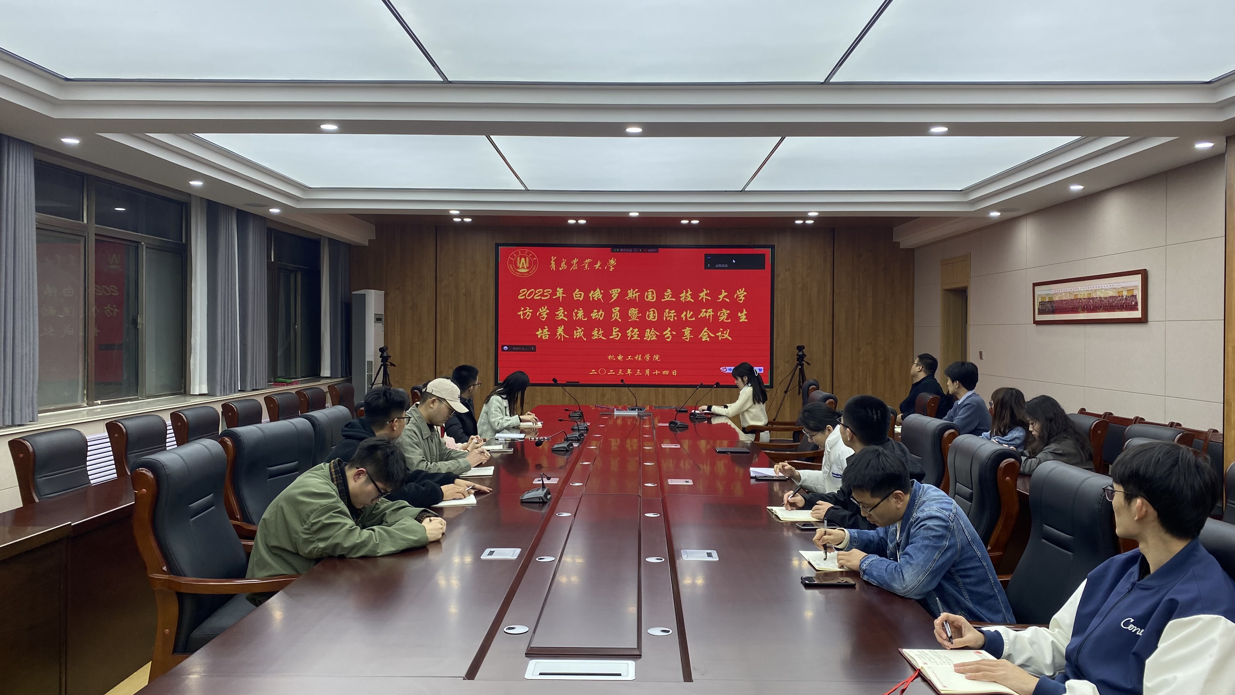 3月14日,ok138cn太阳集团古天乐2023年白俄罗斯国立技术大学访学交流动员暨国际化研究生培养成效与经验分享会议以线下+线上结合的形式在工程楼216会议室举行。国际交流处薛文声老师、ok138cn太阳集团古天乐部分教师代表、全体研究生参加了会议。会议由ok138cn太阳集团古天乐研究生秘书何晓宁老师主持。
