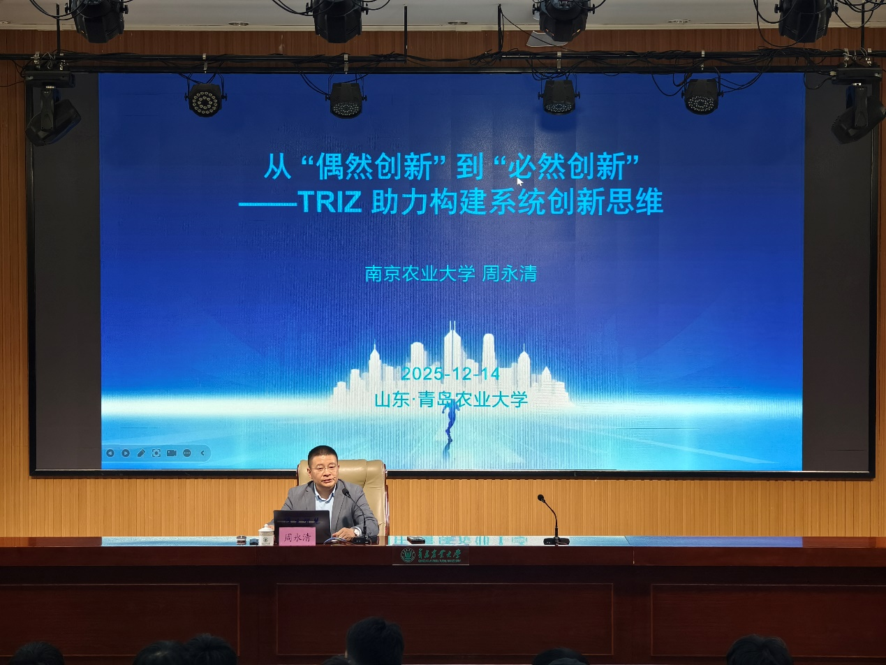 为切实提升研究生导师创新指导能力、夯实研究生创新实践根基,12月14日下午,ok138cn太阳集团古天乐特邀国家科技专家库创新方法专家、南京农业大学副教授周永清来校作《从“偶然创新”到“必然创新”——TRIZ助力构建系统创新思维》专题报告。学院副院长王家胜主持会议,学院全体硕士研究生导师、硕士研究生齐聚报告厅现场,共享创新思维盛宴。