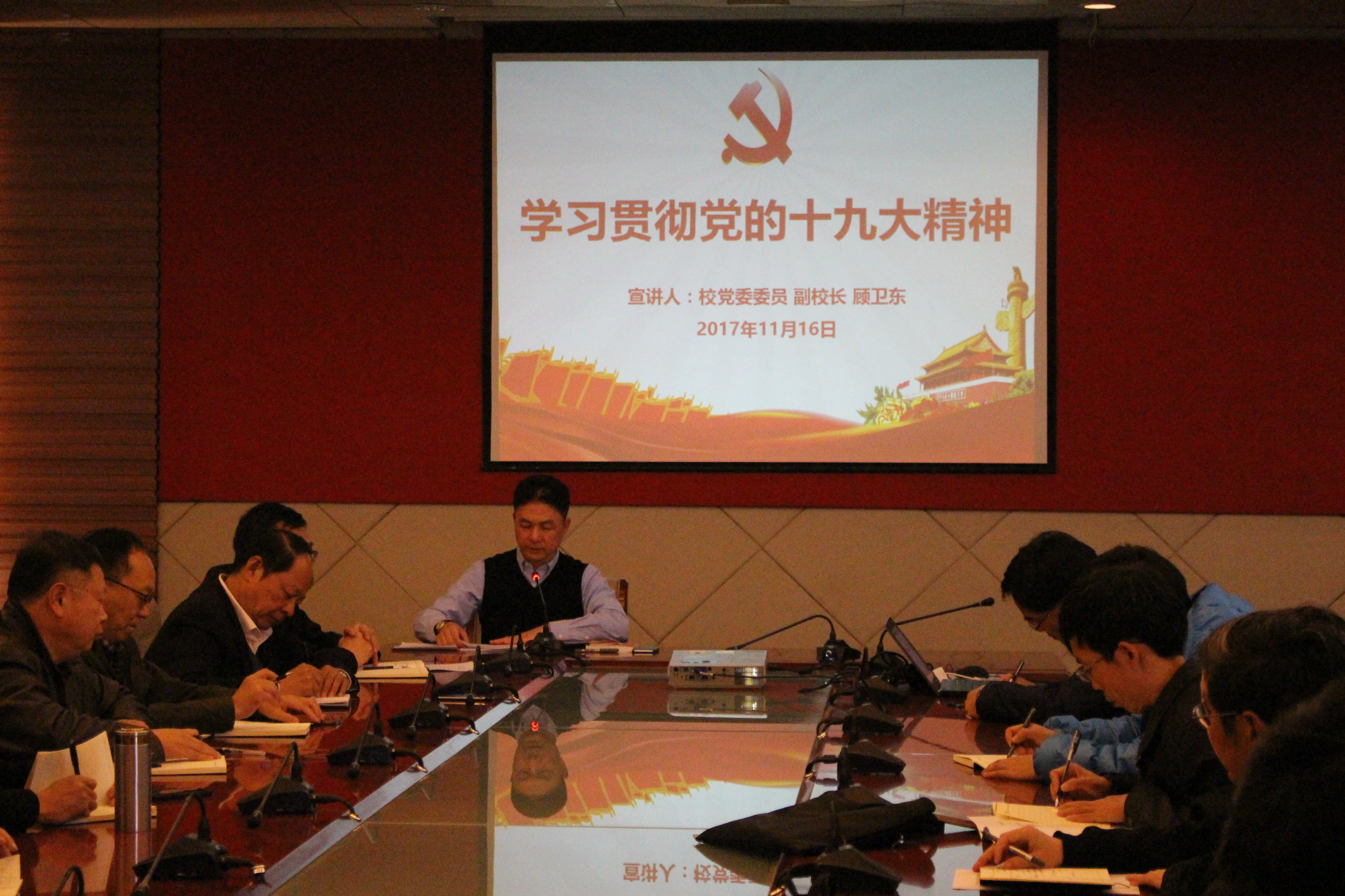 为深入学习宣传贯彻党的十九大精神,坚定自觉地用习近平新时代中国特色社会主义思想统一全体党员干部和全体师生的思想和行动,11月16日,校党委委员、副校长顾卫东同志为国际交流合作处、网络管理中心、理学与信息科学学院、ok138cn太阳集团古天乐的负责人、班子成员和党支部委员会成员作了党的十九大精神宣讲。